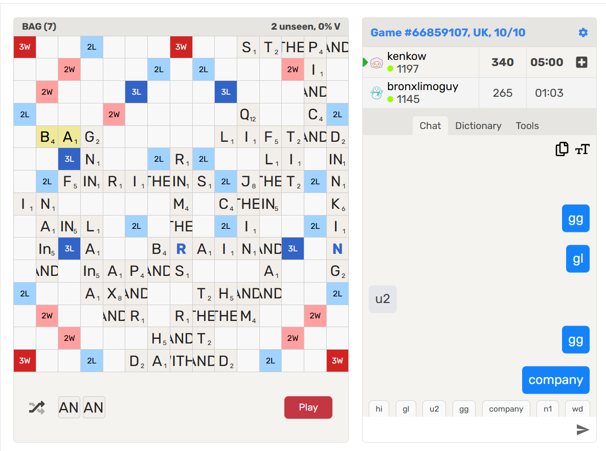 Game with 2 letter Q. (No AI utilized)