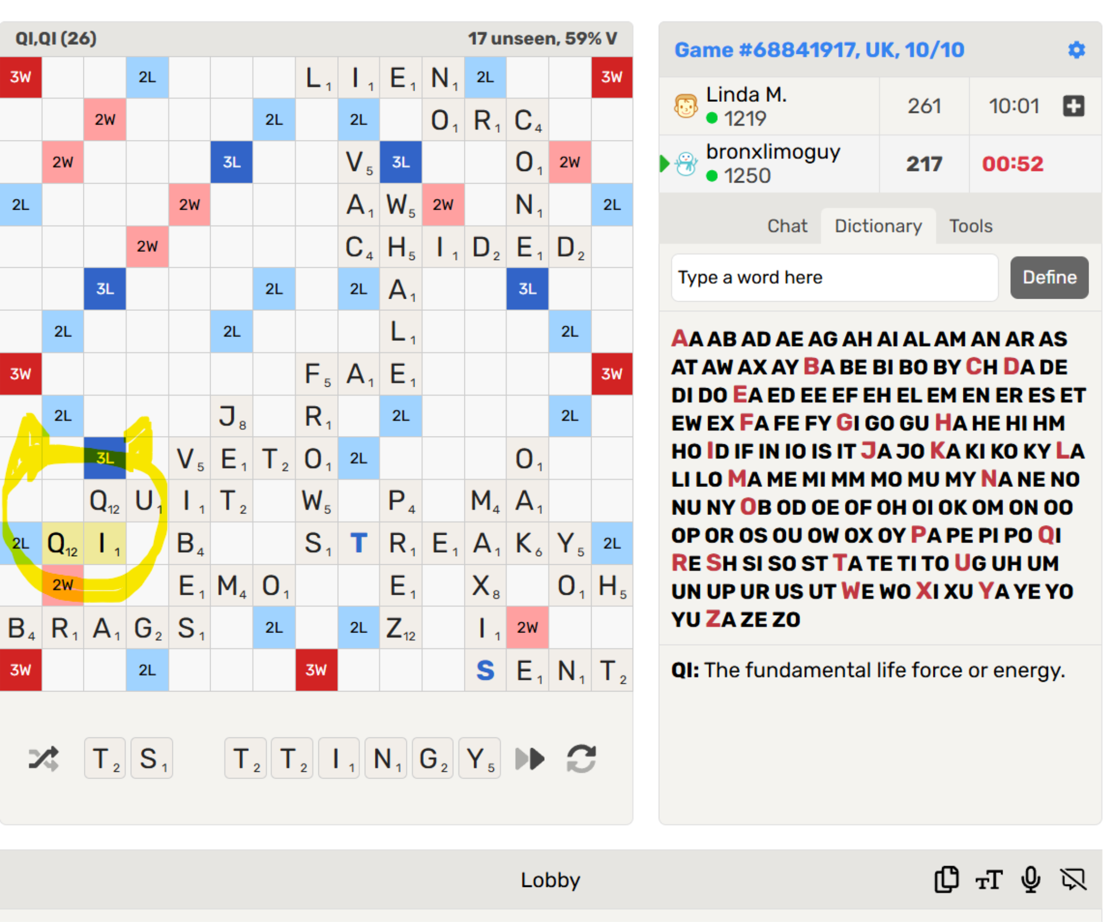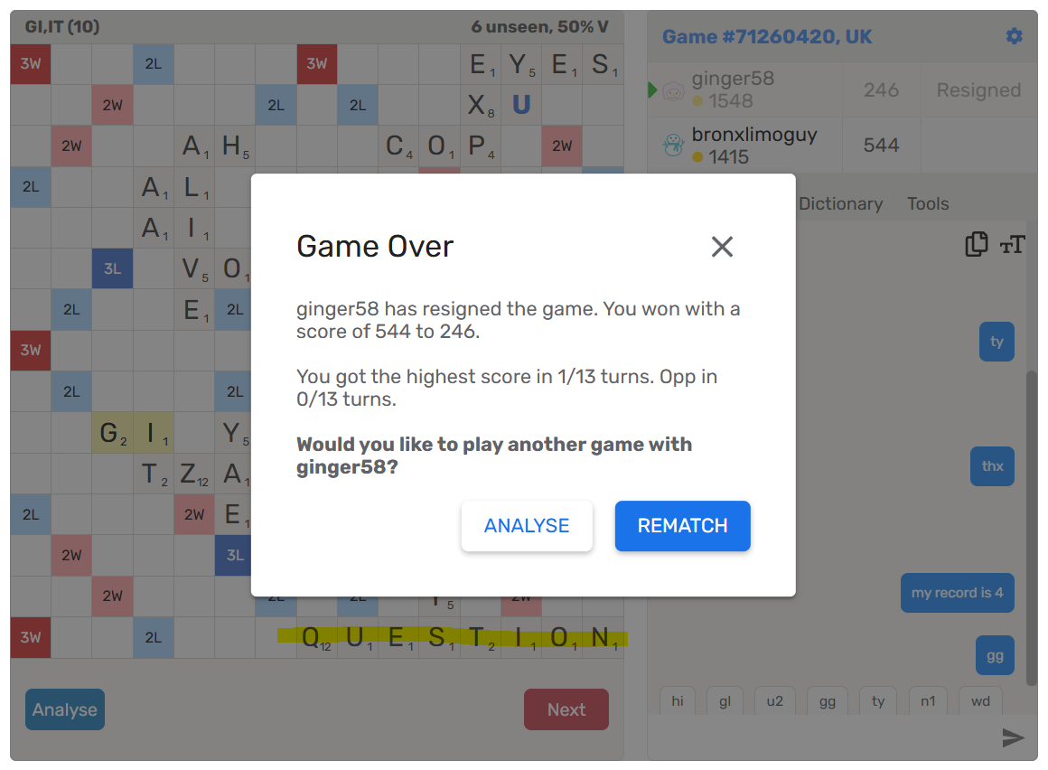 Game with 2 letter Q. (No AI utilized)