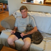 Husband, father and housecrafter, he is seen here with his beloved cat, Fredo.